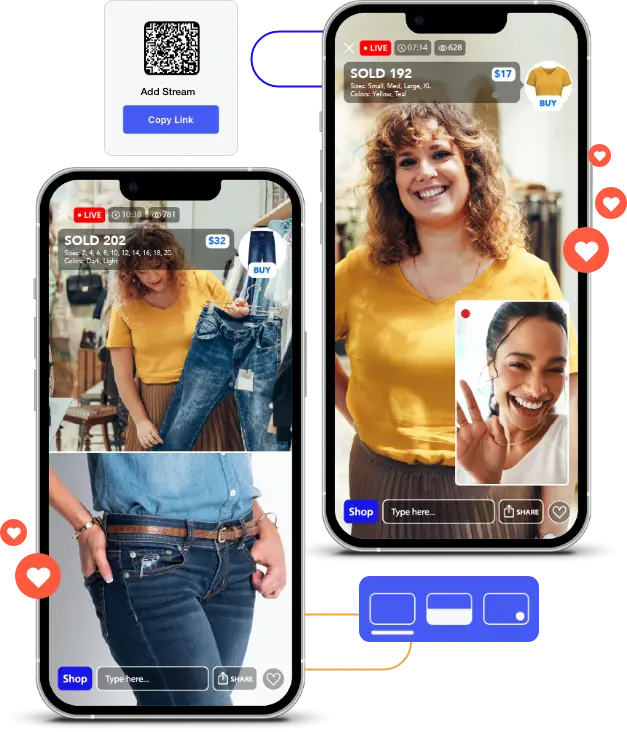 Live selling takes effort—engaging sales don’t just happen. That’s why we built multi-source streaming: to help you create more engaging content without spending more hours on camera. Easily bring in co-hosts, guests, and off-site contributors to elevate your live experience and keep your audience coming back.